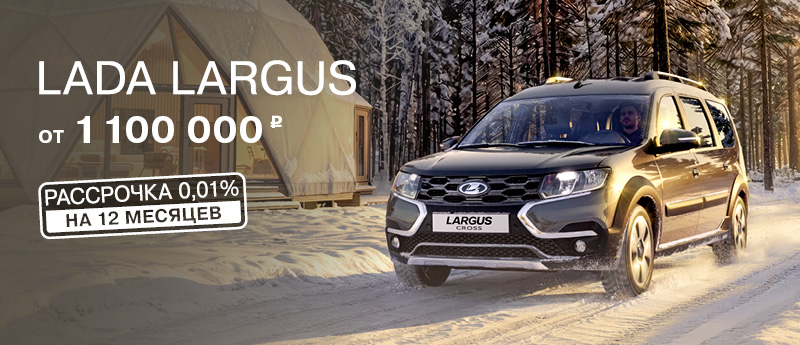 - Выгода 20% (25% для жителей Дальнего Востока) от стоимости нового LADA Largus по Госпрограмме автокредитования.