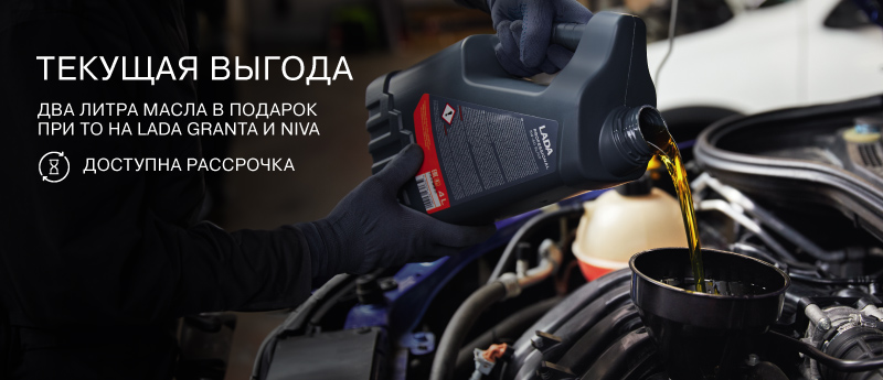 Каждому владельцу LADA Granta и NIVA при прохождении любого ТО мы дарим 2 л моторного масла в подарок.